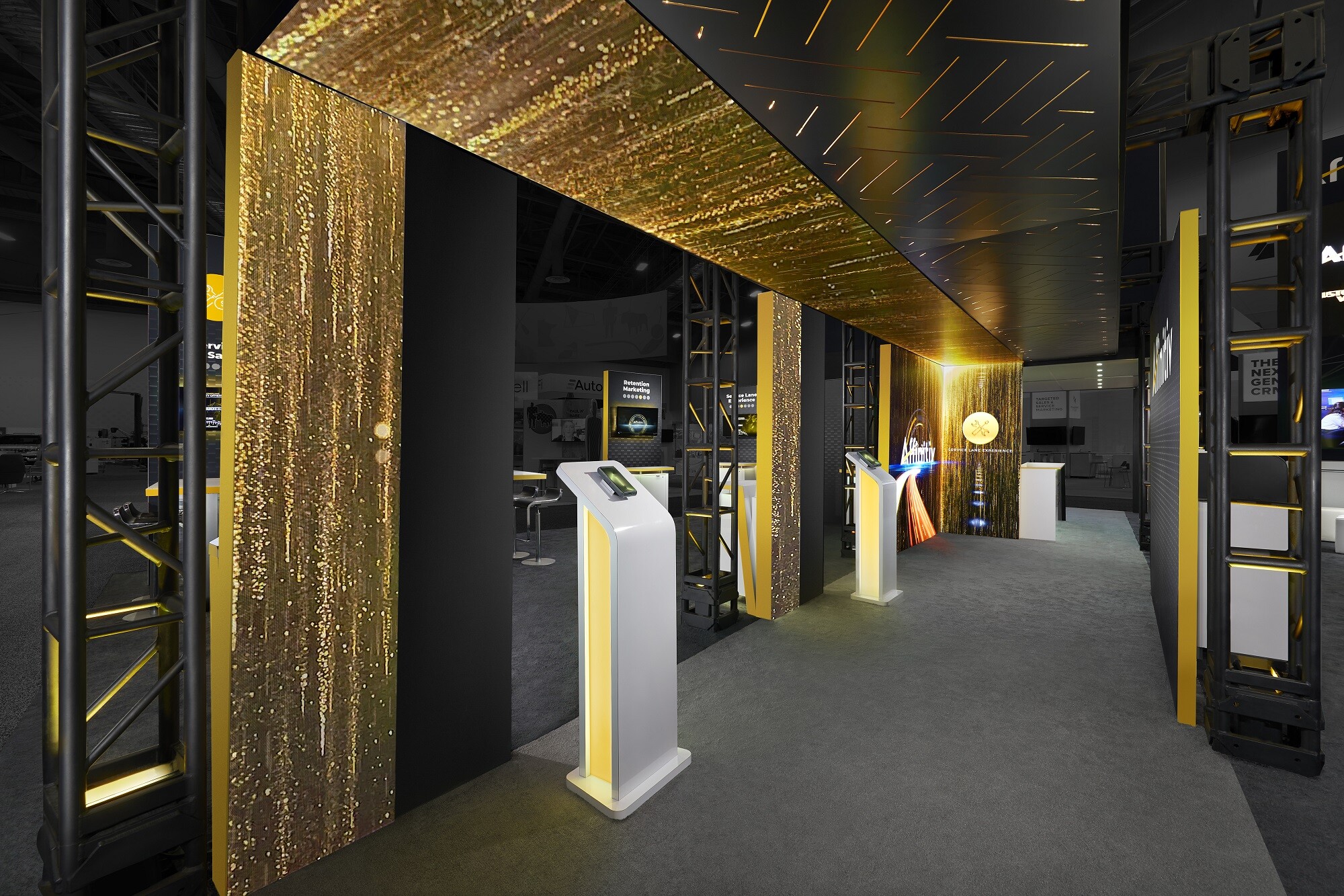 Our inaugural project with Affinitiv for NADA 2022 featured a 30x50 booth with traffic-stopping waterfall LED features, creating an engaging space for demos and meetings. Buoyed by this success, Affinitiv aimed even higher for NADA 2024. Leveraging our deepened partnership and a commitment to bold, tech-forward displays, we expanded their exhibit to a 40x50 space, incorporating state-of-the-art design elements to ensure visibility and impact.