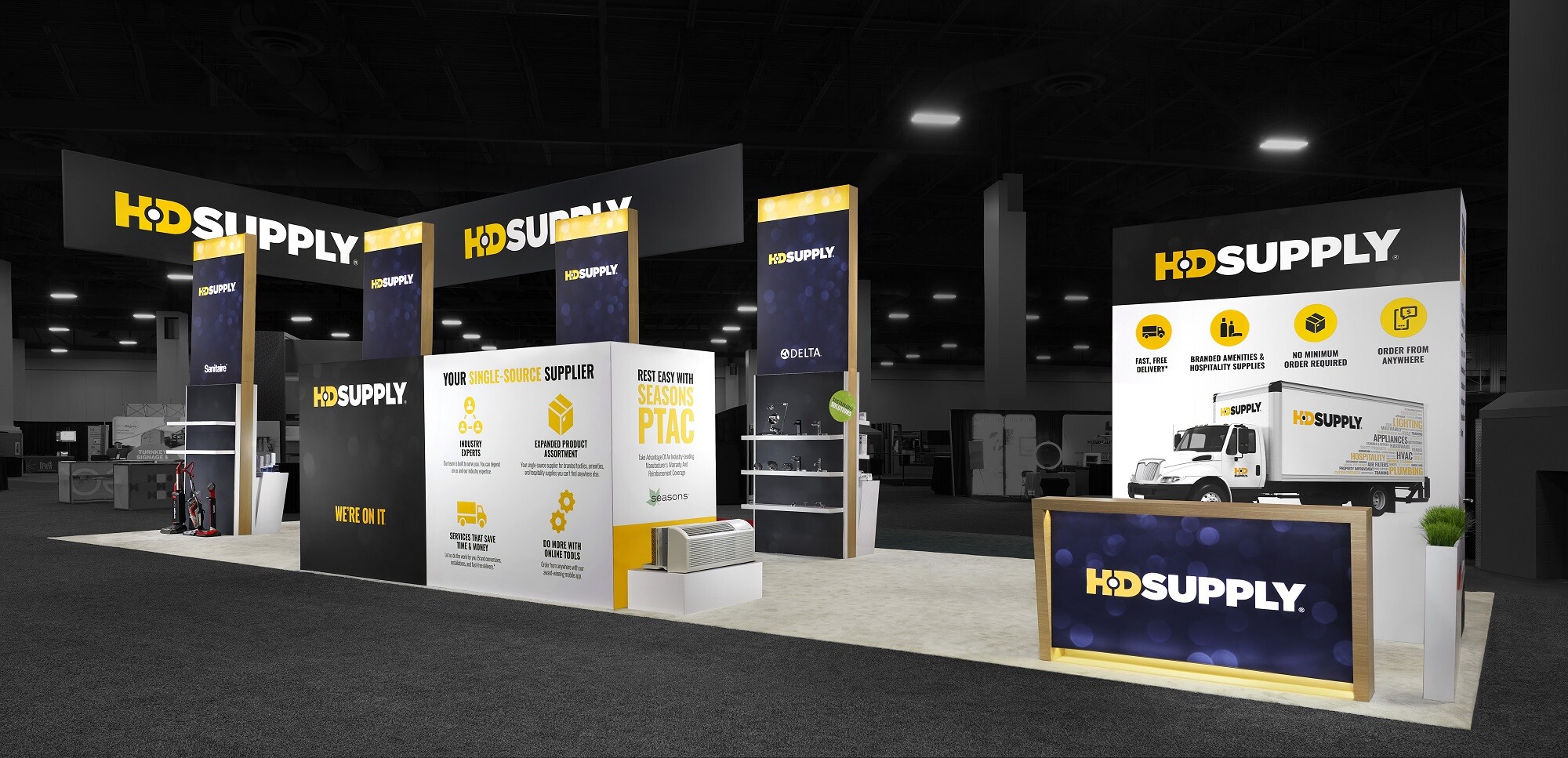 They wanted to develop a fresh concept for each show to keep attendees intrigued. Once we gained a clear understanding of the target audience for each show, we worked together to find creative outcomes to bring HD Supply’s vision to life for each unique exhibit.